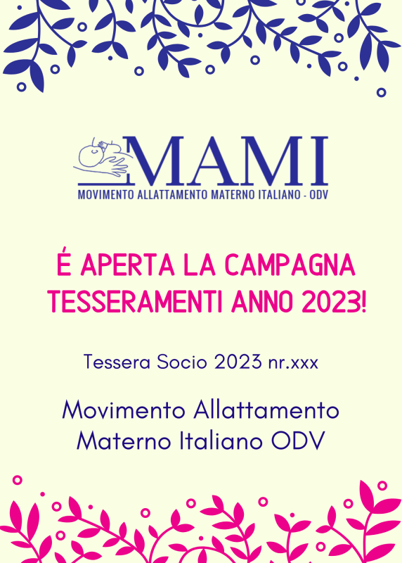 1. Versa 15€ (25€ se ad associarsi è un’associazione) sul conto corrente Codice IBAN IT 10 D 03332 02800 00000 2221218 presso Banca Passadore & C, intestato al MAMI – Movimento Allattamento Materno Italiano.