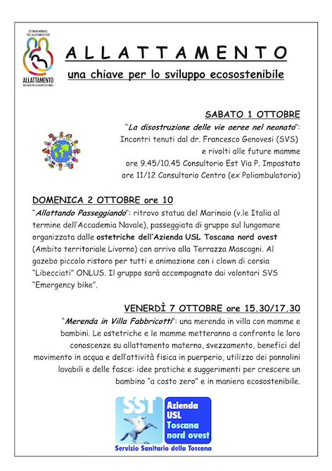 In occasione della SAM 2016, l’Azienda USL Toscana nord ovest – Ambito territoriale Livornese è lieta di invitare tutta la cittadinanza a partecipare alle nostra iniziativa per celebrare l’allattamento.