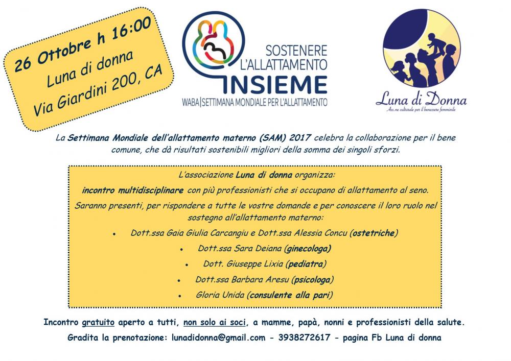 Poiché gli obiettivi della Settimana per l’Allattamento Materno 2017 sono: informare, radicare, stimolare e fare rete, abbiamo organizzato un incontro multidisciplinare con più professionisti che si occupano di allattamento al seno: