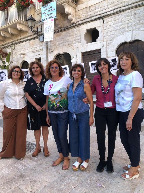 Il tema di quest’anno allattamento e lavoro ci ha portato ad attivare strategie di informazione riguardanti le leggi che tutelano la donna lavoratrice e sostenerla nell’estrazione del latte al fine di armonizzare il tempo di cura con quello lavorativo. Dopo il lavoro CON E NELLA comunità terlizzese attraverso l’allestimento di due info point abbiamo consegnato un opuscolo informativo alla cittadinanza e presentato una mostra fotografica che ha testimoniato il connubio allattamento e lavoro: Andrea 12 mesi con la sua mamma Marcella 39 anni insegnante della scuola dell’infanzia e istruttrice cinofila; Gabriele 9 mesi con la sua mamma Marlena di anni 43, insegnante di scuola dell’infanzia; Giorgia 8 mesi con sua madre Maria, collaboratore amministrativo ASL BA di anni 41.