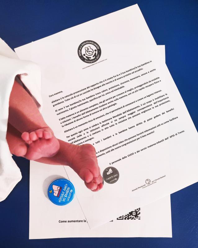Map ItDescrizione dettagliata dell’evento Durante tutta la prima settimana di ottobre gli operatori sanitari delle strutture ospedaliere e consultoriali dell’Apss di Trento consegneranno, a tutte le madri e coppie che frequenteranno i servizi dell’azienda sanitaria trentina e a tutti i genitori dei nuovi nati presso i quattro punti nascita, le locandine con riprodotti i Qr Code di video sull’allattamento, anche in versione multilingue (per ridurre le disuguaglianze), uniti ad una breve presentazione che contestualizza l’iniziativa, illustrando l’importanza dell’allattamento e del suo sostegno e il significato della SAM. Recapito x info Claudia Comina claudia.comina@apss.tn.it Resoconto Come dichiarato, durante tutta la prima settimana di ottobre, gli operatori sanitari delle strutture ospedaliere con punto nascita (quattro) e consultoriali (dieci) hanno consegnato a tutte le madri e coppie incontrate, che hanno fruito dei servizi offerti loro in gravidanza e nel puerperio e a tutti i genitori dei nuovi nati, le locandine con riprodotti i QR Code di video sull’allattamento, anche in versione multilingue (per ridurre le disuguaglianze), corredate di una breve presentazione che ha contestualizzato l’iniziativa, illustrando l’importanza dell’allattamento e del suo sostegno e il significato della SAM.Sono state distribuite in tutto 511 locandine, 252 negli ospedali con Punto Nascita (anche presso la TIN e le Unità Operative di Ostetricia e ambulatori ostetrici) e 259 presso i diversi consultori, a donne in gravidanza (175) e a madri in puerperio.
