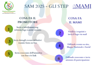 Immaginiamo che durante l’ideazione, la progettazione, la programmazione nei dettagli ed infine la realizzazione delle iniziative per celebrare la Settimana Mondiale per l’Allattamento, tutte e tutti voi vi prefissiate degli obbiettivi da raggiungere. Raccontare e condividere i risultati raggiunti, le modalità che più vi hanno permesso di centrare il bersaglio, ma anche quello che non ha funzionato o che si sarebbe potuto migliorare, permetterà al MAMI e a tutte le realtà associative che hanno partecipato alla SAM 2025 di trarre preziosi consigli, spunti e suggerimenti perché le maglie di questa rete diventino sempre più resistenti e indeformabili e perché ogni anno la SAM sia più efficiente e positivamente impattante a tutti i livelli.