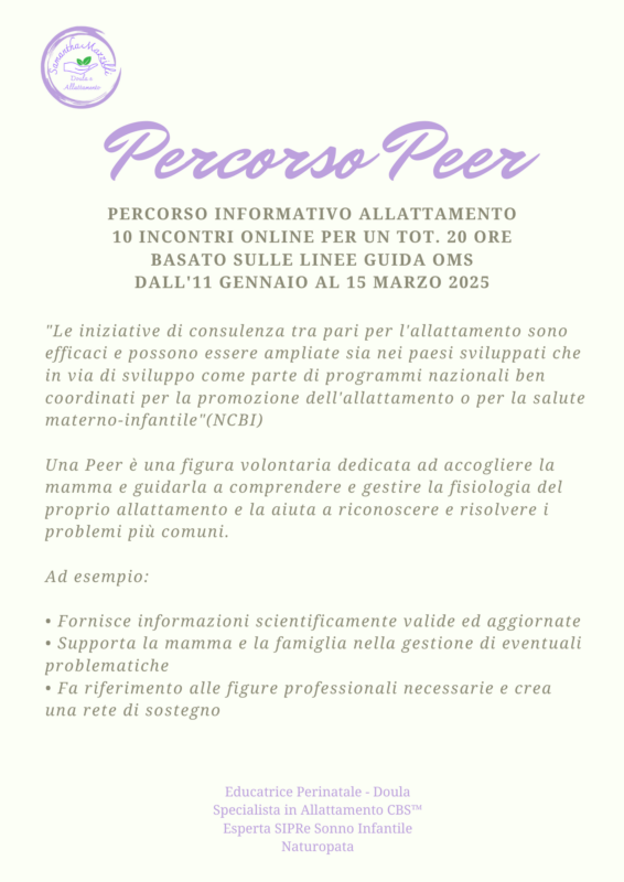 “Una Peer è una figura volontaria dedicata ad accogliere la mamma e guidarla a comprendere e gestire la fisiologia del proprio allattamento e la aiuta a riconoscere e risolvere i problemi più comuni”