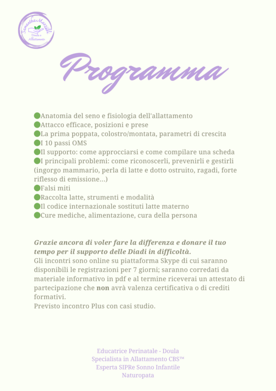 con l’Educatrice Perinatale e Doula Specialista in Allattamento Samantha Mazzilli.