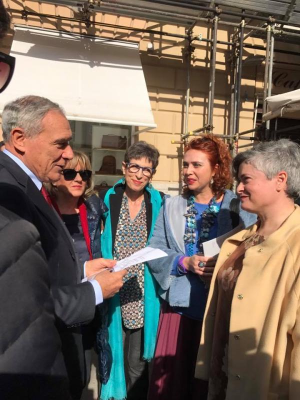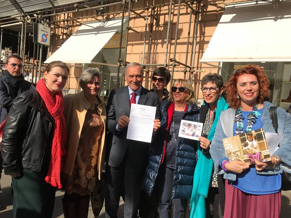 - Monica Garraffa, direttivo MAMI consegna la lettera a Pietro Grasso leader di Liberi e Uguali