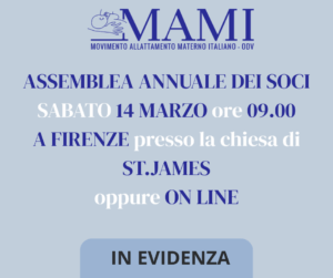 Con la presente, l sottoscritto/a ____ socio di MAMI – Movimento Allattamento Materno Italiano – delega l Sig. ____ ___ a rappresentare e votare in sua vece all’assemblea ordinaria dei soci convocata per il giorno sabato 14 marzo 2026.