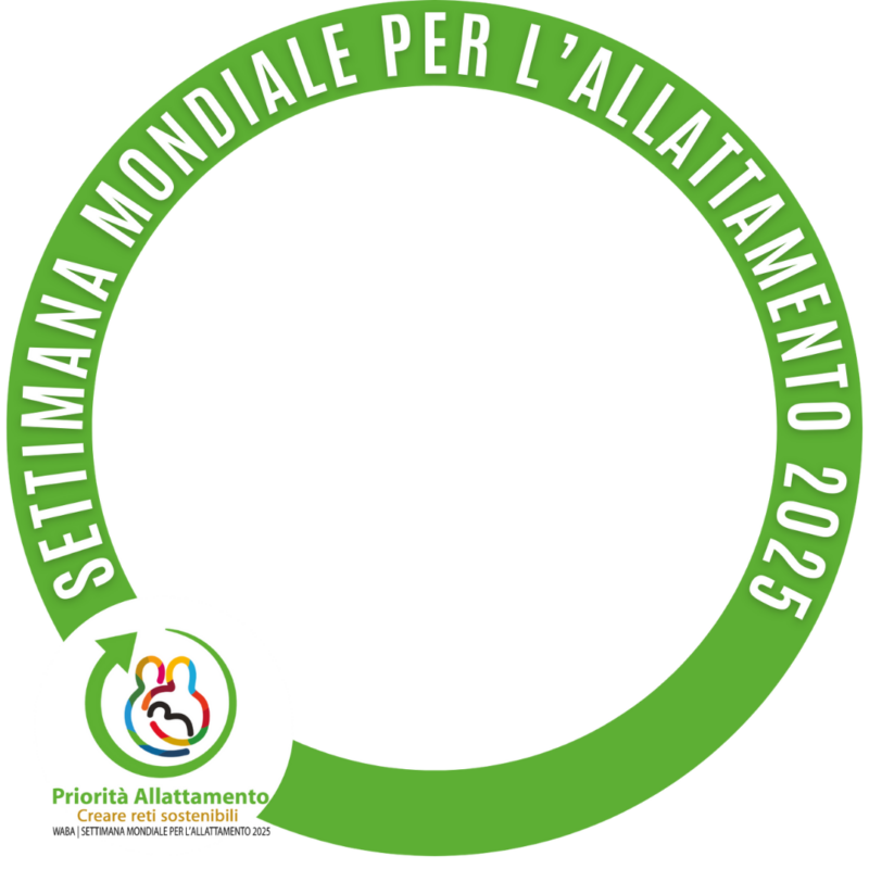 Il cerchio con la freccia verde ci rimanda subito al concetto di sostenibilità, e quest’anno si vuole evidenziare sia l’importanza di ridurre l’impatto ambientale associato alla formula, sia la necessità di creare reti sostenibili di supporto per l’allattamento.