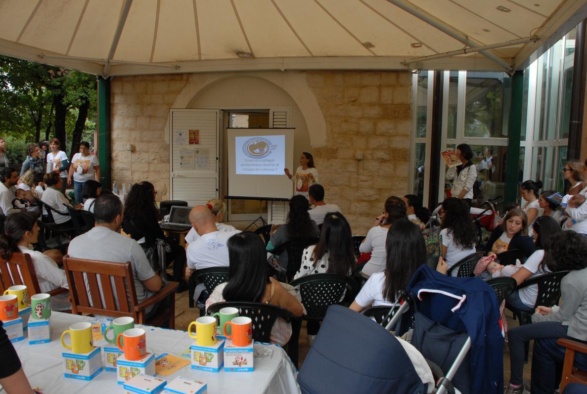 A seguire siamo partite con l’approfondimento: dopo i saluti la nostra Presidente, Maria Daniela Brucoli, ha presentato l’associazione e, per il punto 1, ha illustrato gli Obiettivi del Millennio. Durante questo intervento una delle bibliotecarie ha letto un testo, contro le discriminazioni, tratto dal catalogo ‘Nati per leggere’, che ha molto coinvolto tutti i presenti. Per il punto 2, la nostra vicepresidente, Robert a Brucoli, ha illustrate alcune delle normative, del passato e attuali , che riguardano l’allattamento A seguire, per il punto 3, la nostra socia Mariella ha parlato della sua esperienza di allattamento in tandem e di quanto la vicinanza delle altre mamme dell’associazione sia stata importante nei primi tempi, periodo di grosso scombussolamento. E’ intervenuta , poi, la socia Luciana che ha illustrato l’importante correlazione tra buon avviamento dell’allattamento ed il contatto pelle a pelle. Per il punto 4 abbiamo illustrato i risultati di un lavoro interessante. Grazie alla disponibilità di due dirigenti scolastiche di due licei, abbiamo sottoposto un questionario a 137 ragazzi e ragazze all’ultimo anno di liceo. Durante la discussione, dopo il questionario, abbiamo notato un interesse ed una partecipazione che ci hanno davvero stupiti.