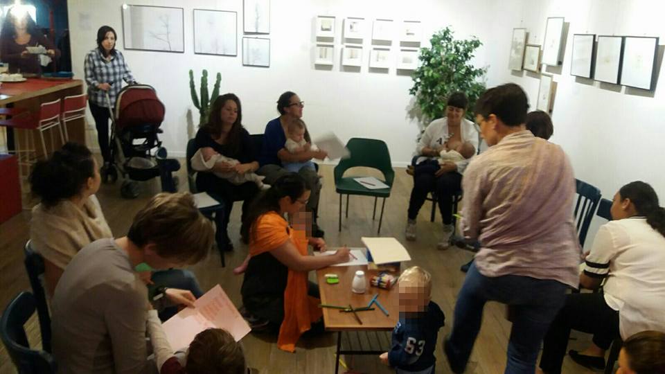 Un bel cerchio di confronto e scambio, pennarelli colorati per scrivere e disegnare che cosa è per noi l’allattamento.
