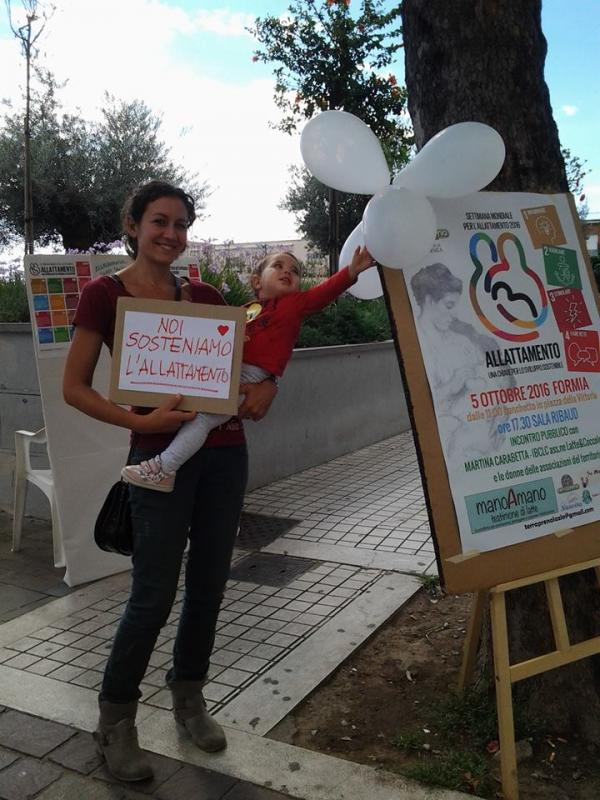 Iniziativa in occasione della SAM – 5 OTTOBRE 2015 – FORMIA Piazza della Vittoria e Sala RibaudDal mattino di mercoledì 5 ottobre abbiamo allestito e presidiato un banchetto con uno spazio allattamento e cambio bebè nella piazza principale di Formia, di fronte al Comune. Abbiamo preparato un questionario sull’allattamento che abbiamo somministrato alle donne per raccogliere esperienze e riflettere su bisogni e desideri. Ci siamo avvicendate al banchetto fino al tardo pomeriggio, parlando e discutendo con molte persone (non solo madri) che si avvicinavano incuriosite al gazebo giallo.