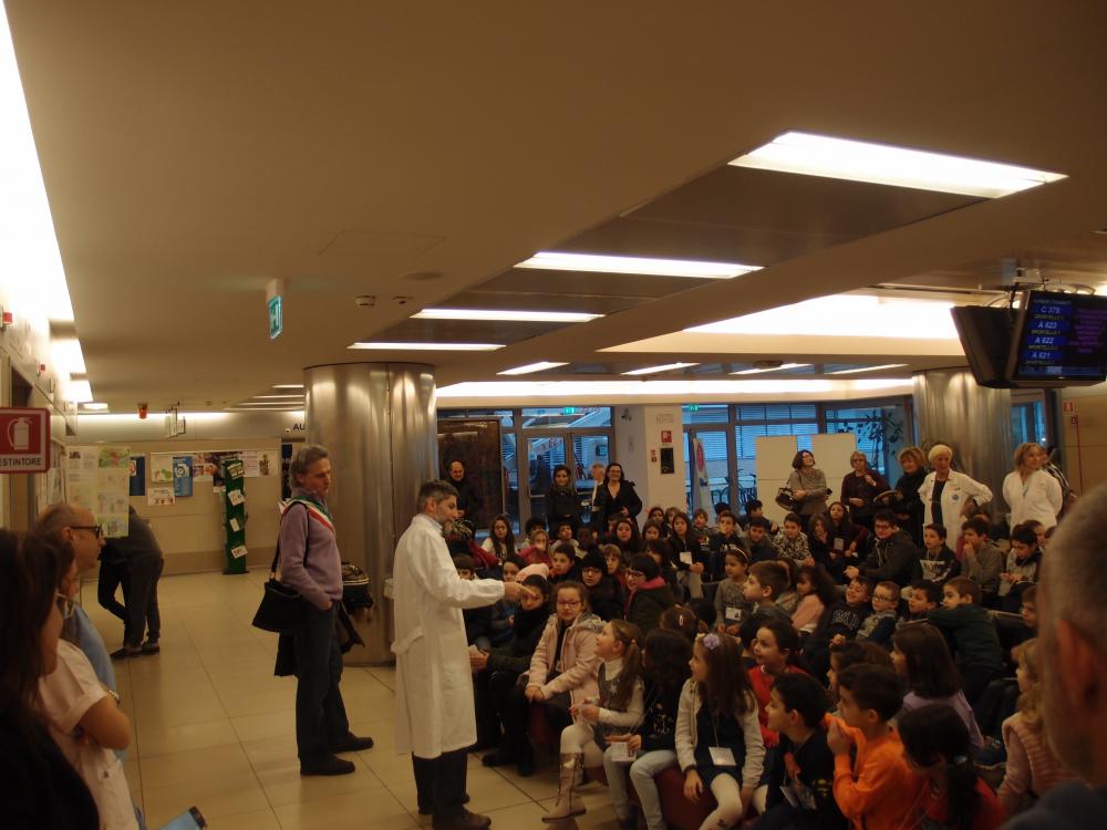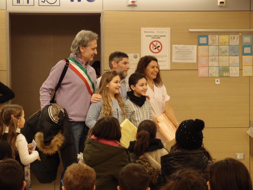 I lavori sono rimasti esposti per tre mesi nell’atrio dell’Ospedale “E. Franchini” di Montecchio Emilia dove sono stati sottoposti a votazione popolare. Tutte le classi partecipanti (1° C, 4° C e D, 5° D) visto l’impegno e la qualità degli elaborati presentati, hanno ricevuto un premio in libri, devoluto dalla Biblioteca Comunale di Montecchio Emilia. La premiazione si è svolta in Ospedale mercoledì 31 gennaio, in un clima festante, dopo aver accompagnato le classi a visitare il reparto di Ostetricia, il Nido, la stanza dedicata alle mamme che allattano e la Sala Parto. Presenti, tra gli altri, il Sindaco di Montecchio Emilia Paolo Colli, il dott. Alessandro Volta, la dott.ssa Patrizia Camerlengo e i referenti del progetto, l’ostetrica Alessia Bonilauri e il pediatra dott. Ciro Capuano.