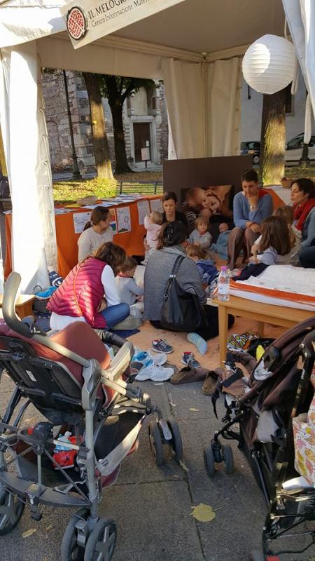 Due di questi momenti si sono svolti in piazza, in occasione di un evento nel quale partecipavamo con la postazione dell’Associazione creando una situazione confortevole per le mamme che allattano. In apertura ai momenti di lettura esponevamo il significato della SAM e del tema annuale, mettendo a disposizione schede e materiale informativo, che per tutta la permanenza dell’evento erano ben esposte nel gazebo.