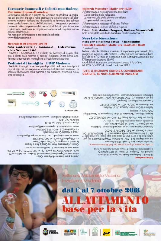 Iniziativa curata da: Comune di Modena, Azienda USL e Consultori Familiari, Azienda Ospedaliero – Universitaria di Modena, Ospedale Policlinico, Collegio delle Ostetriche, Pediatria di Comunità, Pediatri di Famiglia, Farmacie Comunali, Federfarma Modena, Associazioni di Volontariato per il sostegno dell’allattamento. Le Ostetriche del Policlinico e dell’AUSL saranno presenti in Piazza Grande a Modena durante il flashmob nazionale; sarà garantito il servizio di mediazione culturale