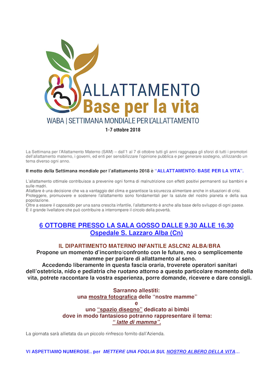 Il motto della Settimana mondiale per l’allattamento 2018 è “ALLATTAMENTO: BASE PER LA VITA”.