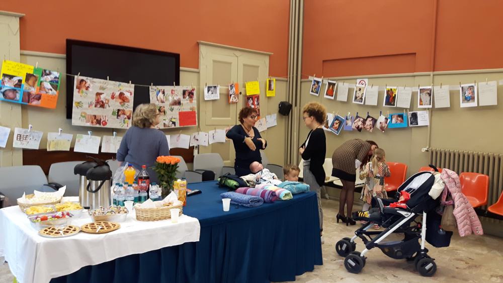 E’ stata allestita una mostra fotografica sul tema dell’allattamento con materiale concesso dalle mamme che frequentano il nostro Punto di Sostegno per l’Allattamento al seno; inoltre sono stati esposti disegni eseguiti da bimbi dell’asilo sul tema: “il latte di mamma”.