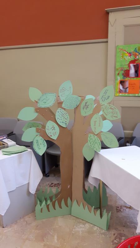 Abbiamo realizzato un albero di “cartone” sul quale mamme, papà e bimbi hanno apposto una foglia con su scritta una frase, un pensiero o semplicemente il proprio nome a testimonianza della loro presenza alla giornata.