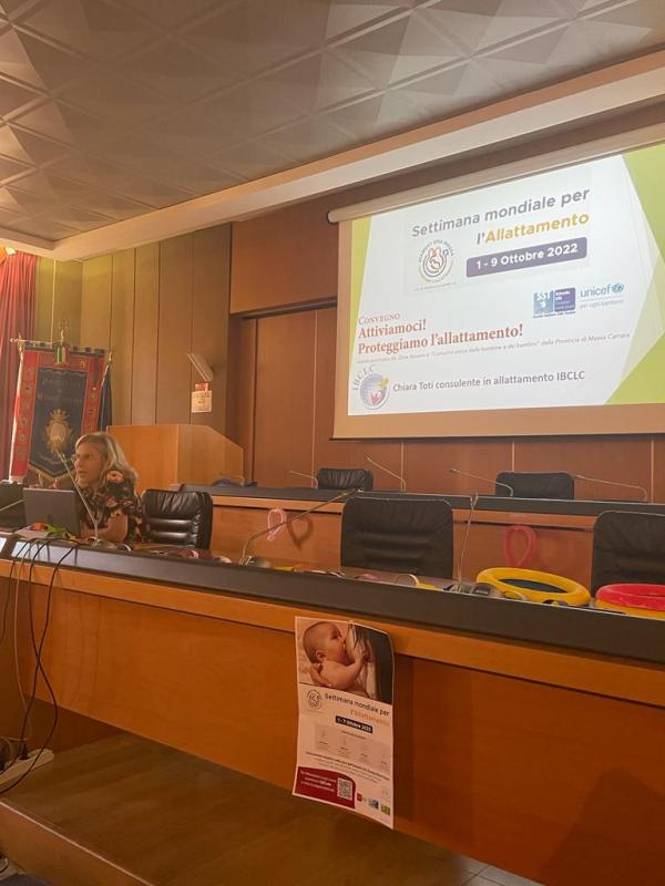 Ho partecipato come ospite/relatrice all’evento SAM della Comunità Amica dei bambini e delle bambine zona Apuane, Massa Carrara Azienda Usl Toscana Nord  Ovest (responsabile dott.ssa Elisa Bruschi) che concludeva una settimana densa di eventi (1 baby put stop al giorno). Si è svolto presso il maestoso palazzo Ducale e sono intervenuti esponenti dell’amministrazione della politica e della sanità.  Nello specifico io ho parlato della figura professionale IBCLC.