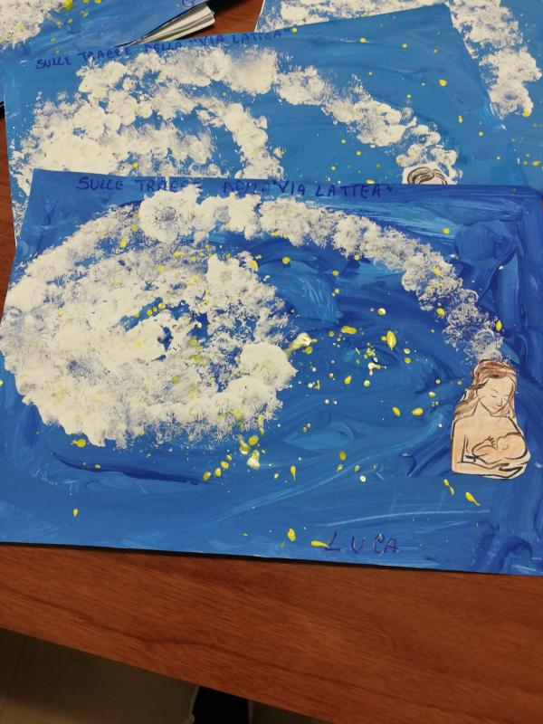 I bambini a scuola hanno realizzato dei lavori grafici sulla via lattea e una canzone per esortare le mamme ad allattare, che abbiamo cantato tutti insieme!!!