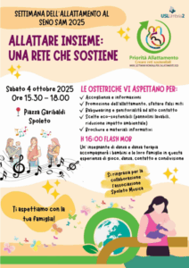 Il team ostetrico ospedale/territorio di Foligno e di Spoleto si rendono a disposizione per la collettività per fare counseling circa le buone pratiche circa l’ allattamento, sfatando falsi miti e basandosi sulle più recenti evidenze scientifiche. L’ obiettivo è incentivare una genitorialità ad alto contatto e promuovere scelte ecosostenibili mirate a ridurre l’impatto ambientale associato all’alimentazione artificiale. L’ evento si svolgerà dalle ore 15 alle ore 18:00 del 04/10/2025 in Corso Cavour a Foligno e in piazza Garibaldi a Spoleto, con delle “isole informative tematiche” (spazio allattamento, isola babywearing, isola pannolini lavabili…) presso le quali il gruppo ostetrico si renderà disponibile per promuovere i vari punti sopra citati con il fine di mostrare alle famiglie la rete di sostegno che la continuità assistenziale ospedale-territorio può garantire attorno al tema allattamento. All’interno della manifestazione ci sarà un flash mob con delle mamme che praticano “danza in fascia”. Durante questa esibizione le mamme stesse, coordinate da una professionista del settore, promuoveranno una genitorialità ad alto contatto ballando con i propri bambini in fascia. |